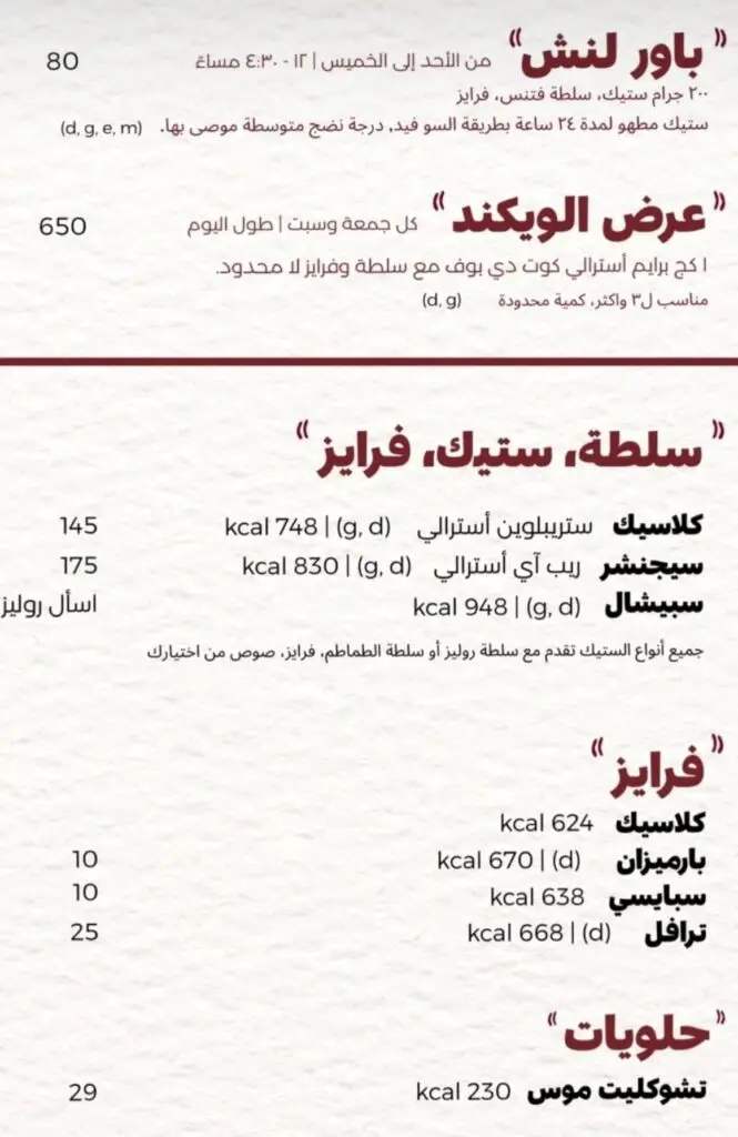 أشهر عروضهم شريحة ستيك 200 جرام، مع: